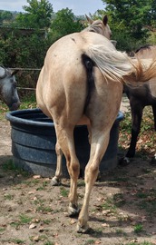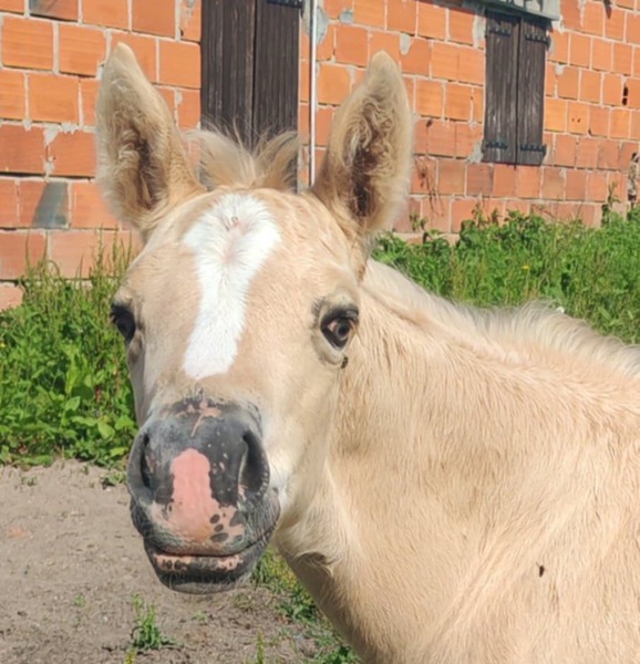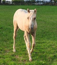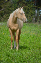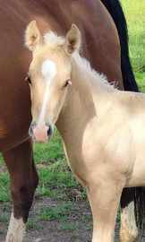 Ne le 5 Mars 2019, de Goer Andy Go et de Vaya Tim Whizzer, Très joli mâle, bien construit de robe buckskin blanket, déja très proche de l'homme il est affectueux et se laisse très bien manipulé